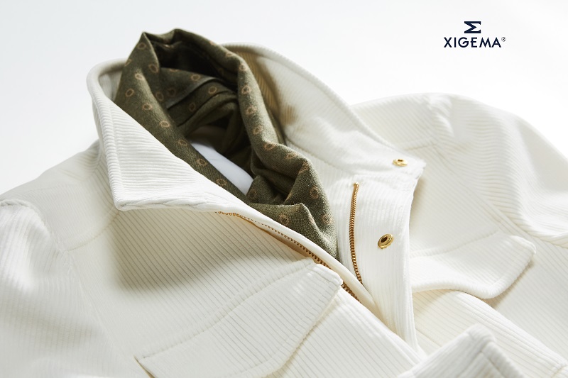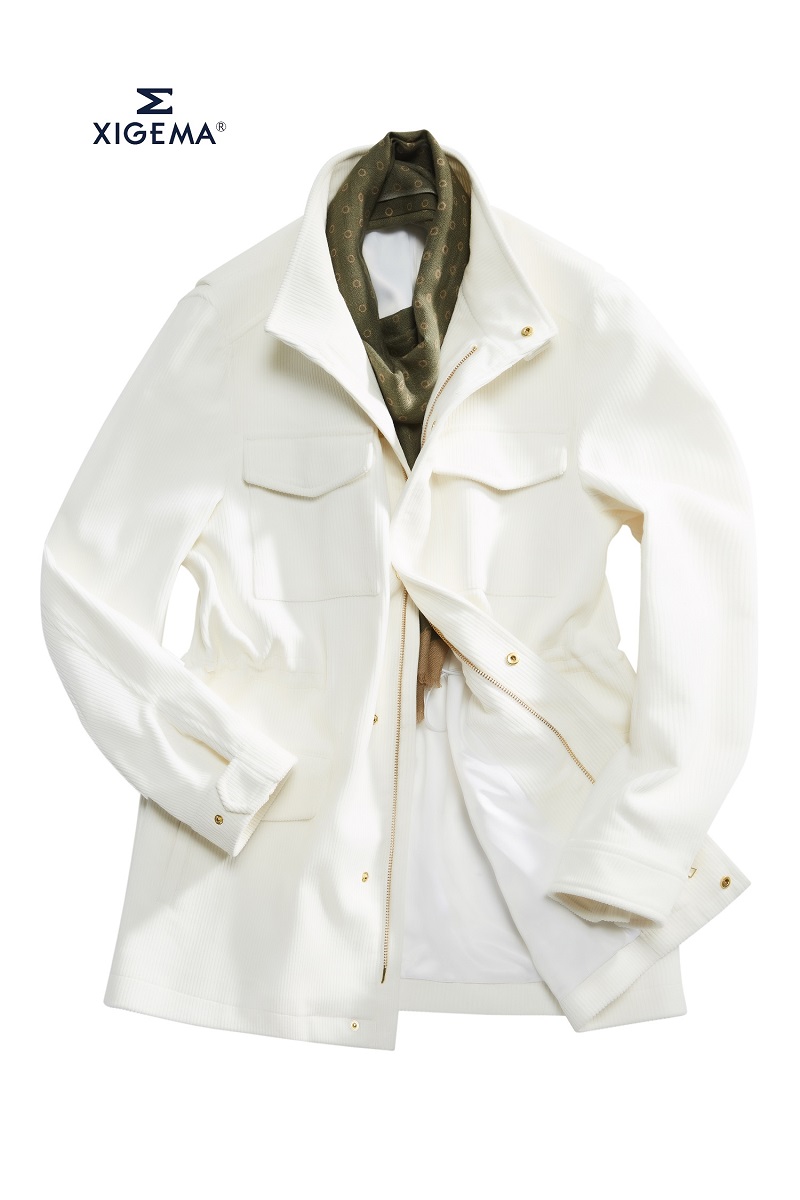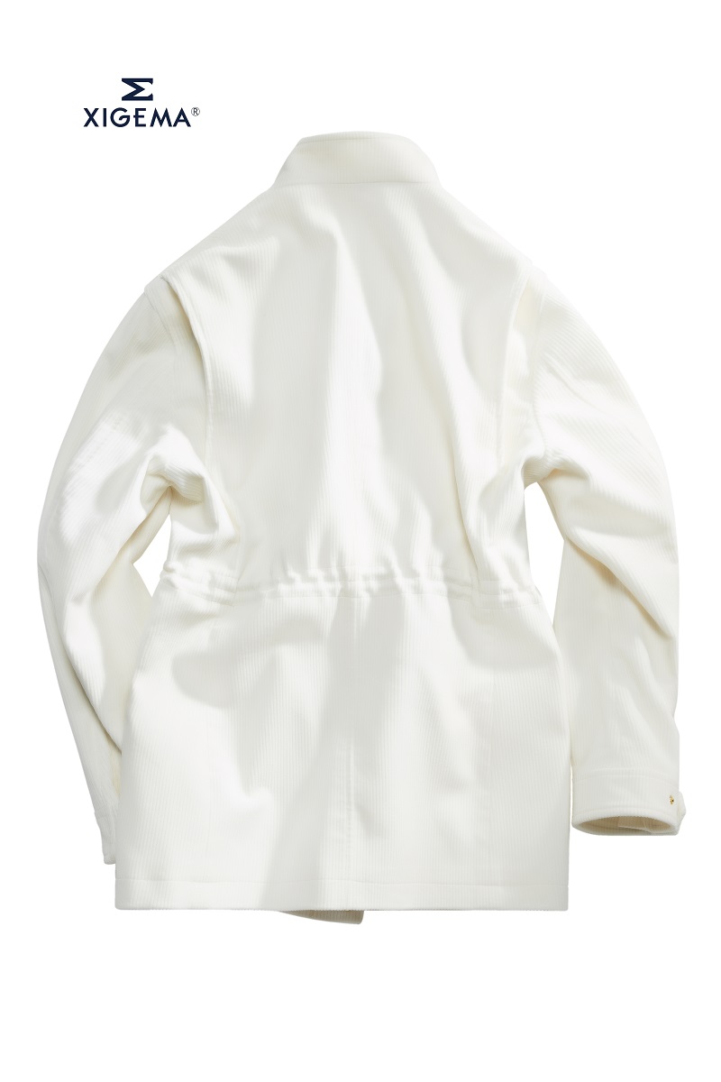 純白色的復(fù)古獵裝夾克,瞬間化身貴氣十足的英倫紳士,面料產(chǎn)地來源于英國,棉,380克。