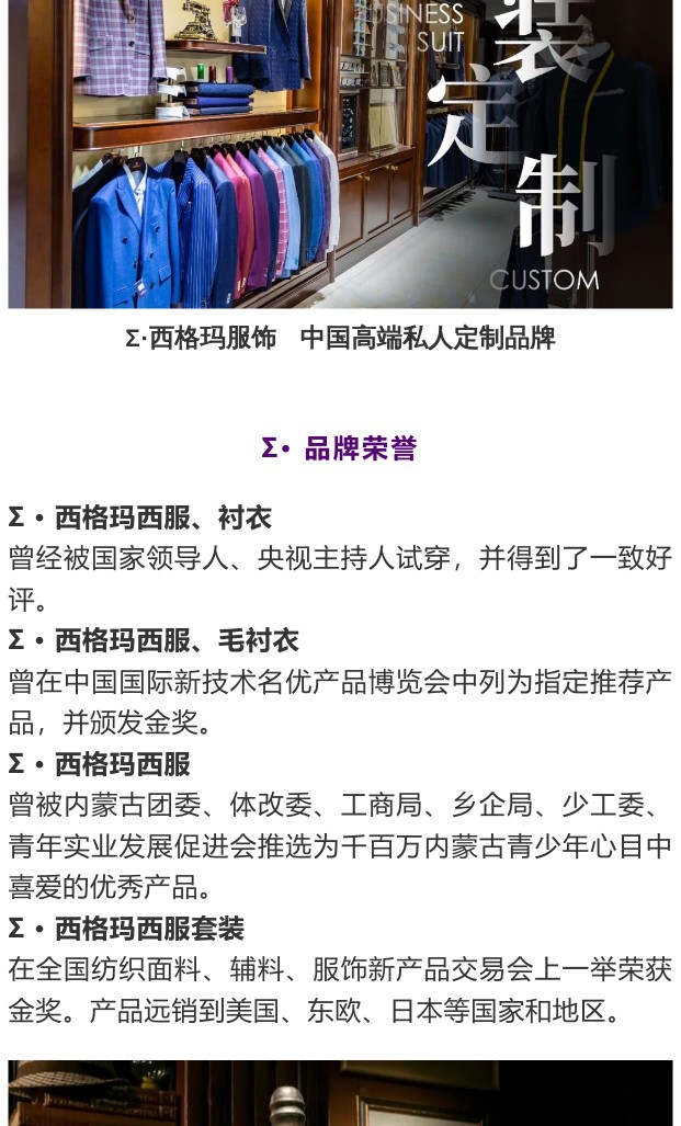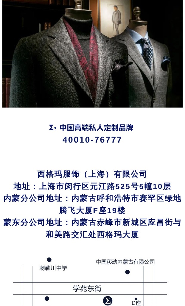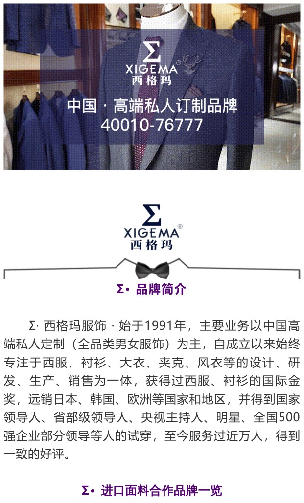 中國(guó)高端私人定制品牌 ~Σ · 西格瑪服飾,為高品質(zhì)生活代言