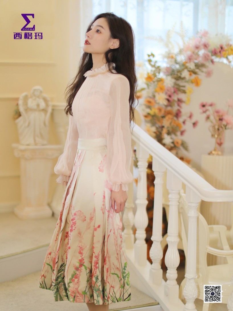 「春日穿搭」櫻花粉雪紡小衫釋放浪漫雅致精致手工釘珠點(diǎn)綴溫柔木耳邊印花壓褶半裙搖曳春日芬芳手縫立體花卉營(yíng)造優(yōu)雅層次美#輕盈春裝##今天穿什么##我的春日穿搭##優(yōu)雅##氛圍感##浪漫春日#
