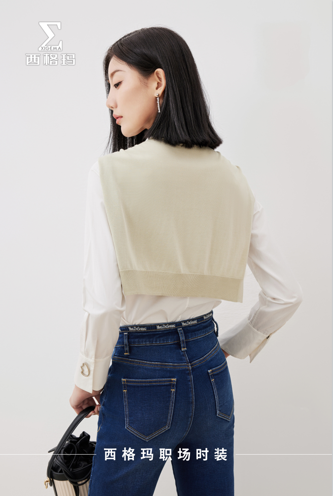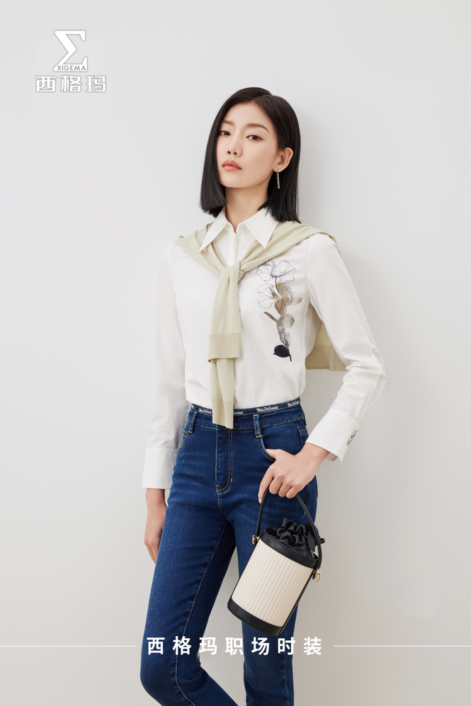 春日穿搭簡(jiǎn)約白色小H型印花襯衣點(diǎn)綴海棠花,清雅且靈動(dòng)配淺綠針織披肩和牛仔褲隨性自在,漫步春日光景西格瑪品牌大使王鷗-王鷗同款系列